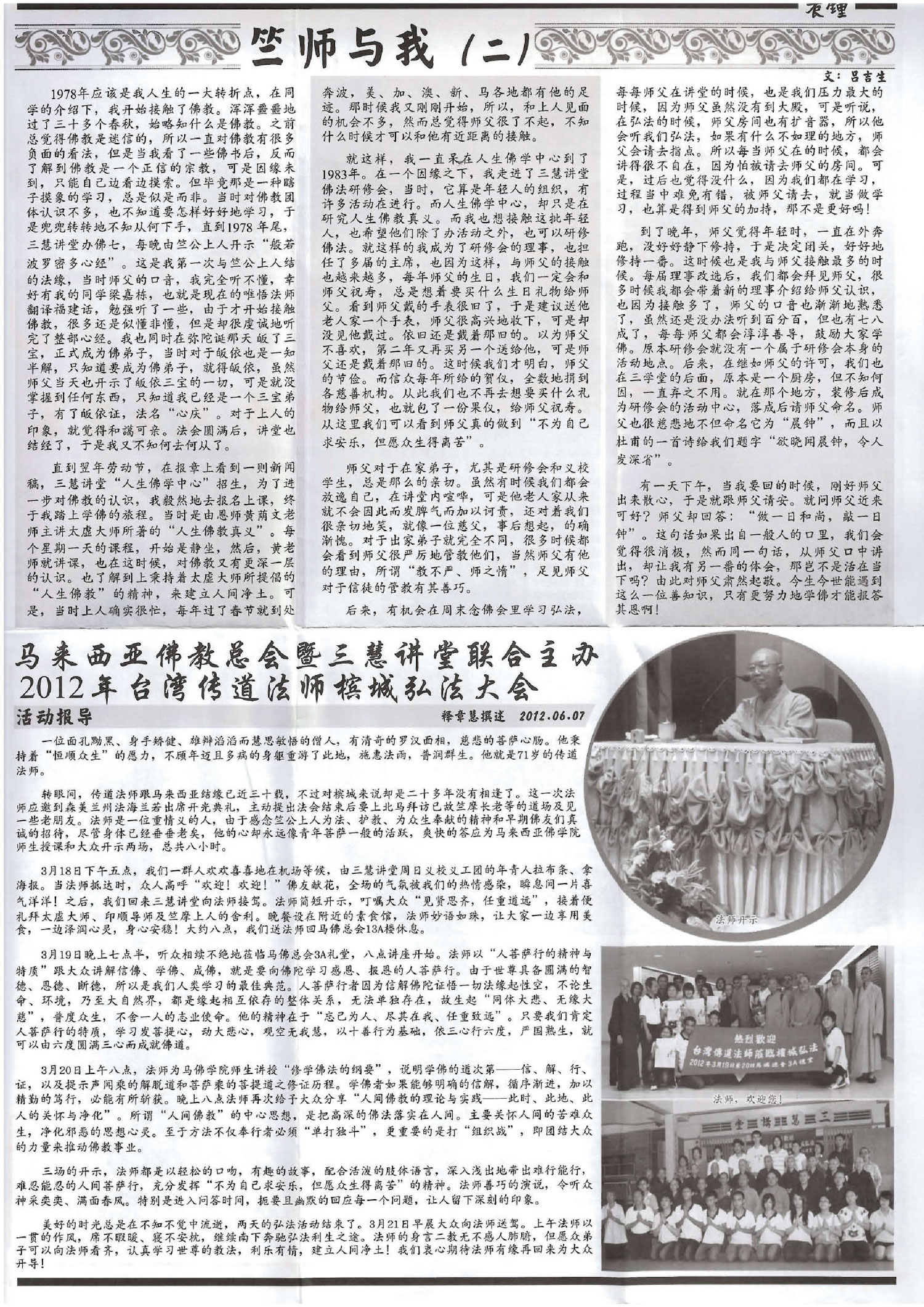 • 三慧讲堂佛法研修会成立的经过